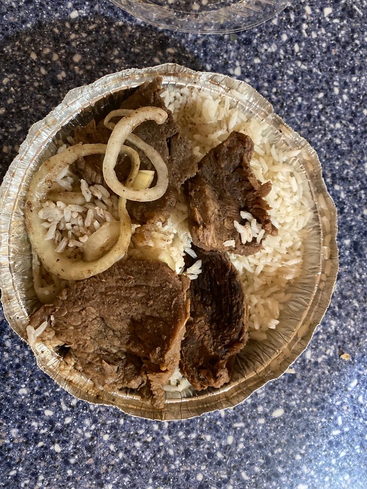 Bistec Encebollado Arroz, Habichuelas, Ensalada Combo